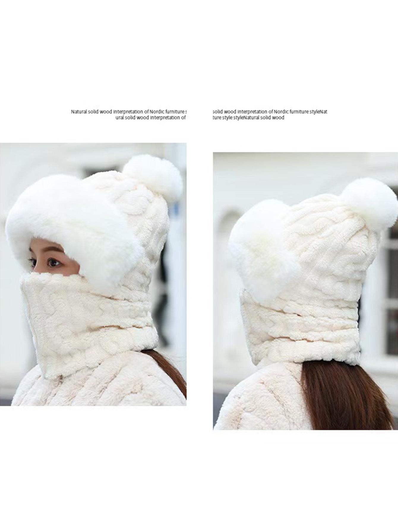 Шапка женская зимняя шарф маска интегрированный комплект из двух предметов ветрозащитная флисовая защитная шапка утолщенная теплая шапка Baotou
