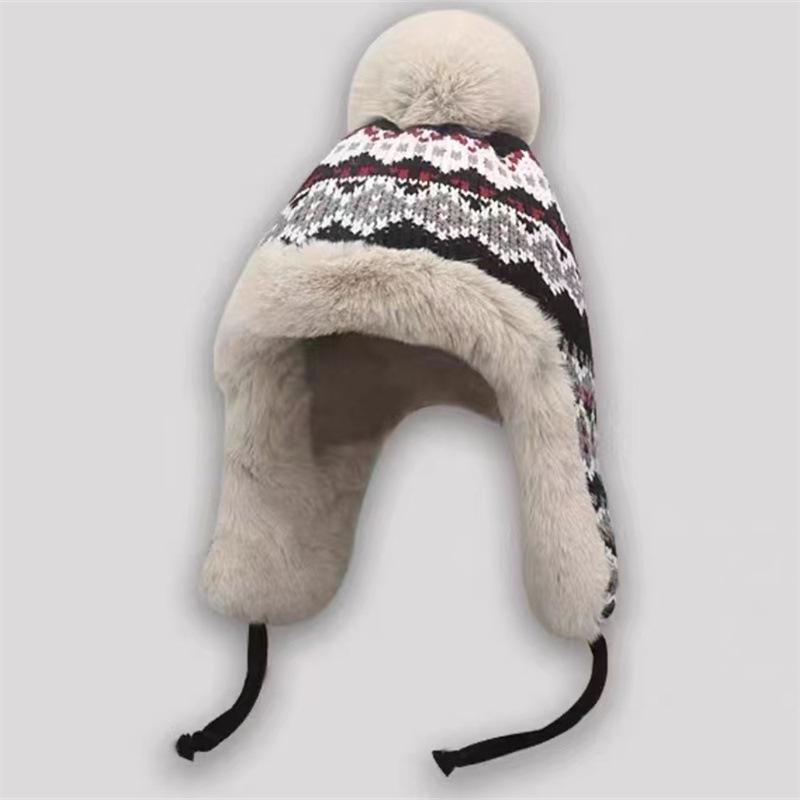 Шапка женская зимняя шерстяная утолщенная и бархатная теплая шапка для путешествий катания на лыжах ветрозащитная и морозостойкая шерстяная защитная шапка для ушей зимняя M(56-58cm)