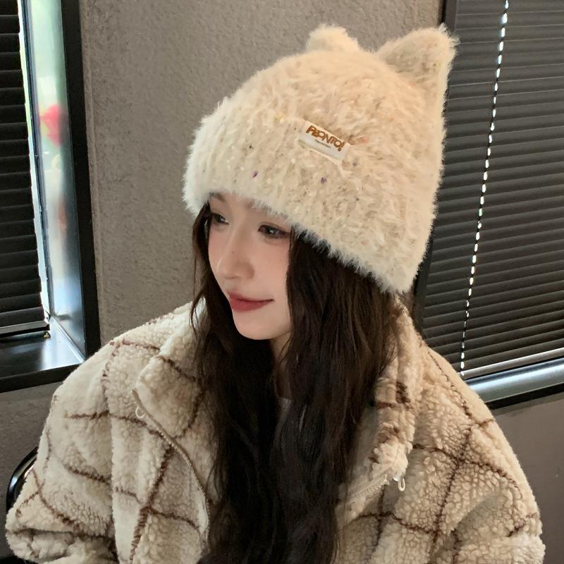 Шапка женская милая вязаная шапка маленькая универсальная холодная теплая защитная шапка шерстяной пуловер шапка Tide