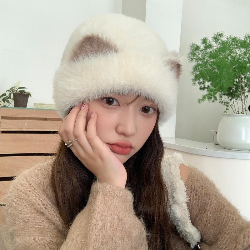 Шапка женская новая большая окружность головы вязаная шерстяная шапка зимняя теплая защита ушей плюшевая пуловерная шапка One Size
