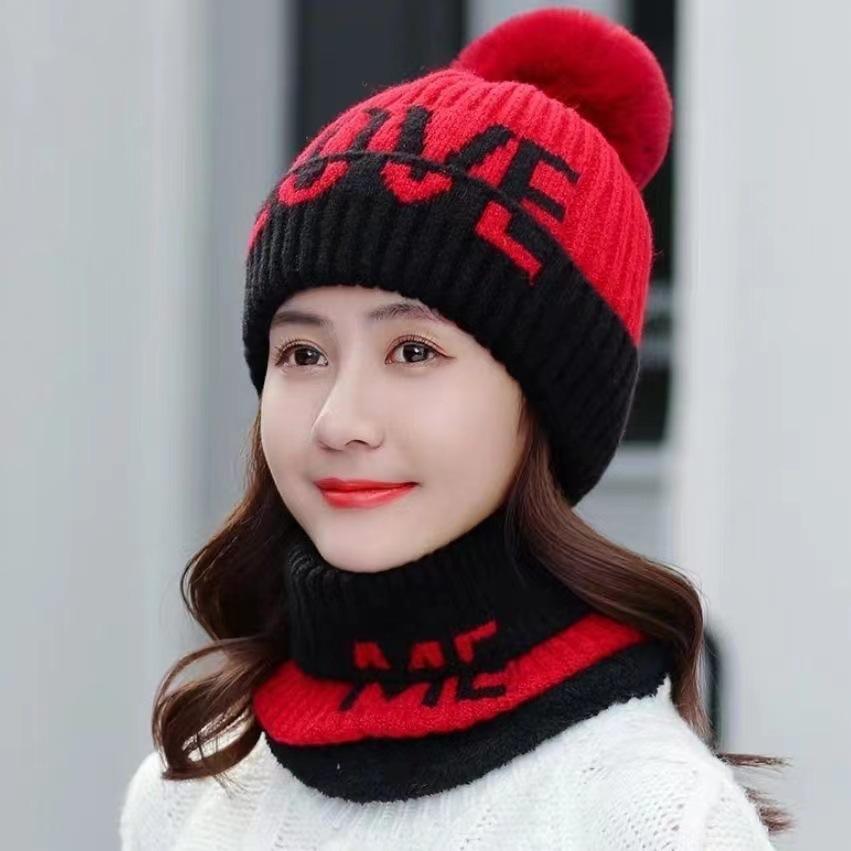 Шапка женская новая зимняя бархатная вязаная ветрозащитная утолщенная теплая шарф-двойка утепленная утепленная шерстяная шапка