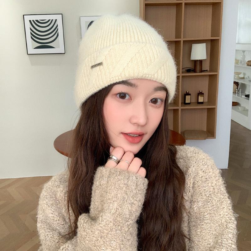 Шапка женская однотонная универсальная вязаная шерстяная шапка из кроличьей шерсти зимняя теплая большая окружность головы пуловер шапка