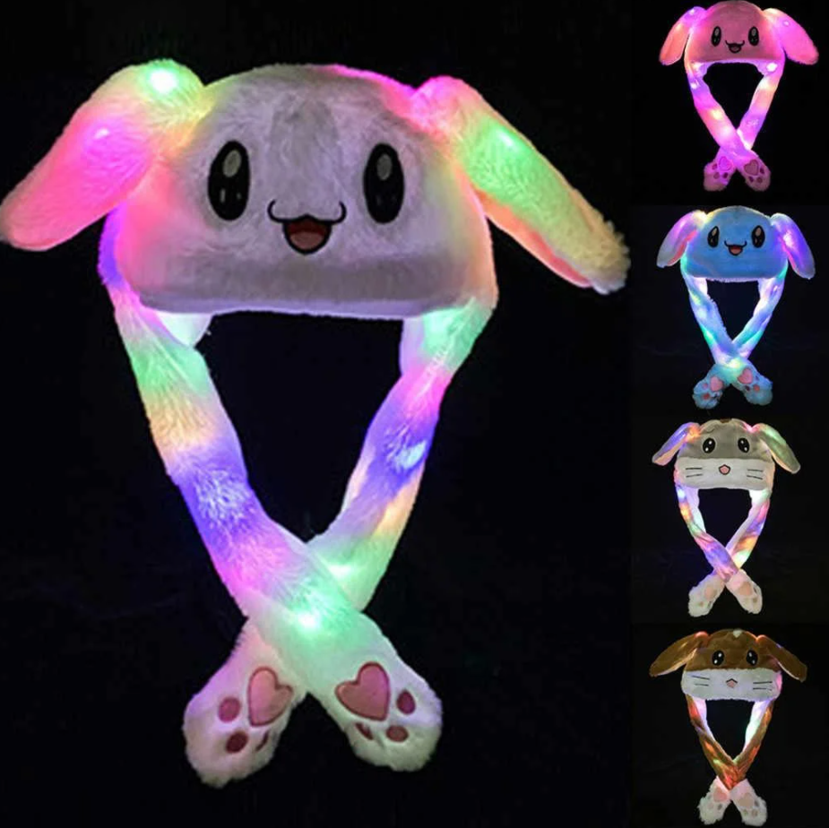 Забавная светящаяся шапка с милыми заячьими плюшевыми ушками, шапка для детей и взрослых, светящиеся зимние теплые вечерние Шапки.