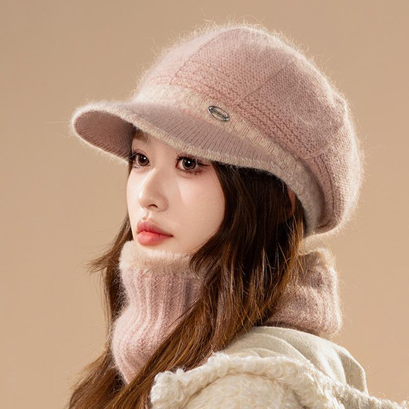 Шапка из искусственного меха кролика с полями — толстая вязаная зимняя шапка для женщин, теплая и стильная only hat розовый