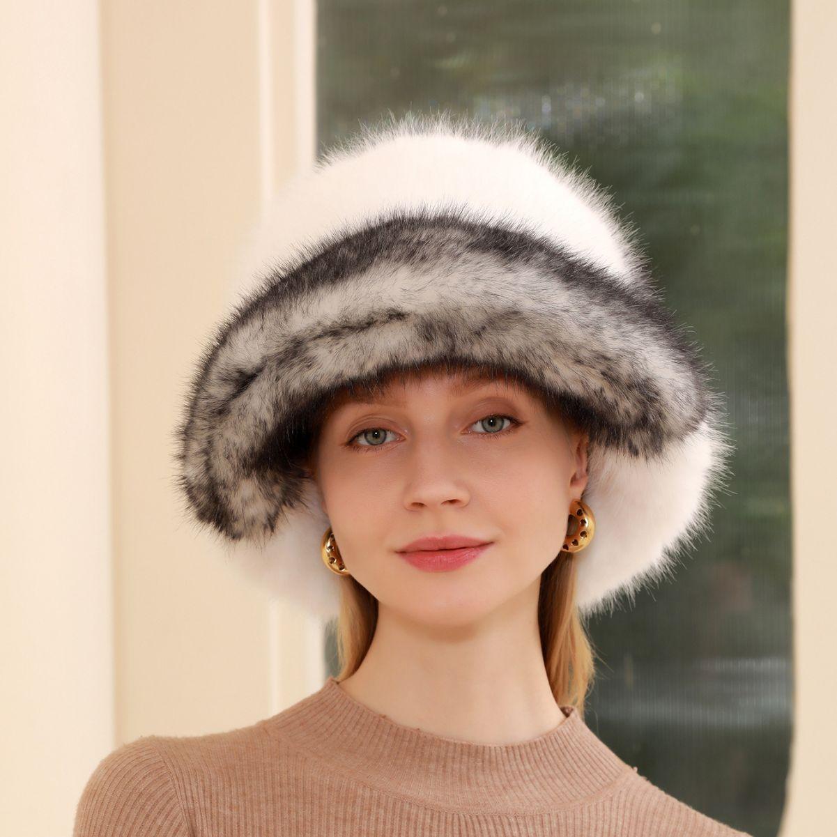 Шапка из меха кролика женская осенне-зимняя утепленная шапка с мехом, плюшевая шапка, утепленная универсальная вязаная шерстяная шапка M(56-58cm)