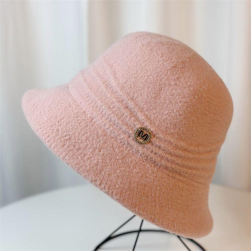 Шапка осенне-зимняя теплая вязаная шапка рыбака, универсальная и модная шляпа-ведро и тазик 54-58 CM розовый