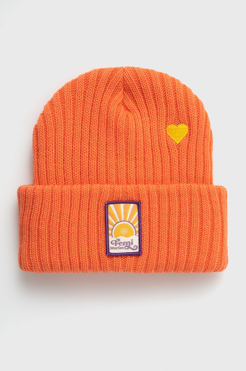 Шапка с вълна Femi Stories в оранжево от плътен трикотаж, Оранжев