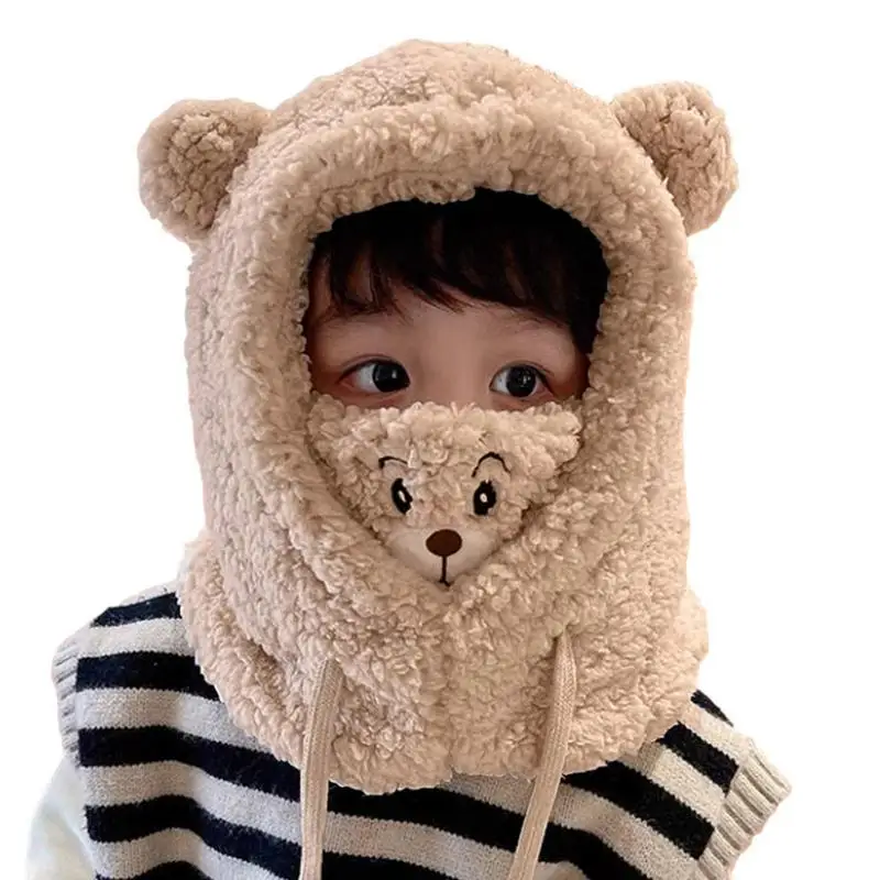 Шапка с медведем мультяшный многофункциональный шарф для малышей Шапка защита от холода теплый зимний осенний шарф шапка теплая для детей