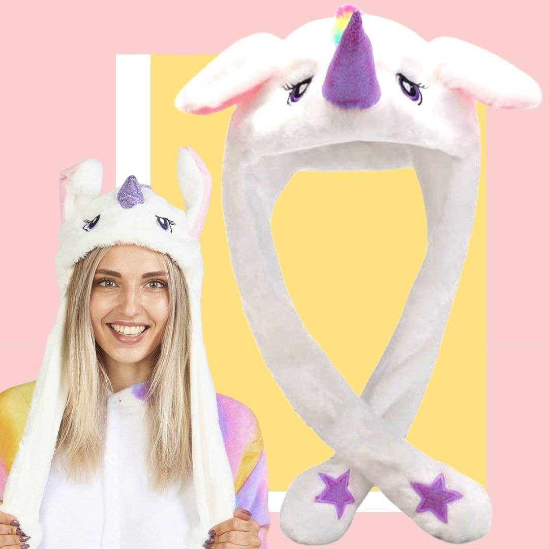 шапка с подсветкой и лапками единорог Светящаяся шапка Pikachu подвижные уши белая карнавальная