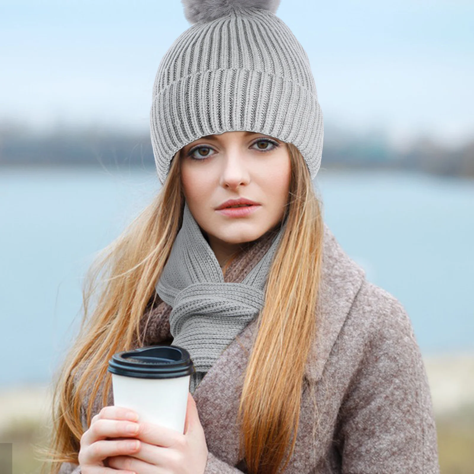 Шапка шарф набор зимний для женщин шарик для волос черная пряжа для активного отдыха