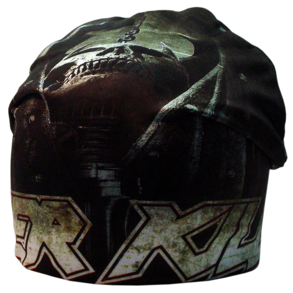 Шапка с изображением логотипа трэш-метал группы Overkill. Головной убор изготовлен из трикотажа и флисовой подкладки с помощью технологии 3D-печати.