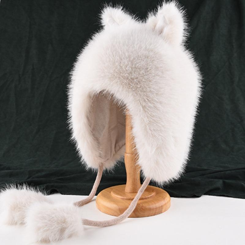 Шапка Lei Feng с кошачьими ушками, женская, осенне-зимняя, теплая, защитная шапка для ушей, милая и симпатичная, плюшевая шапка, обмотанная лисой One Size