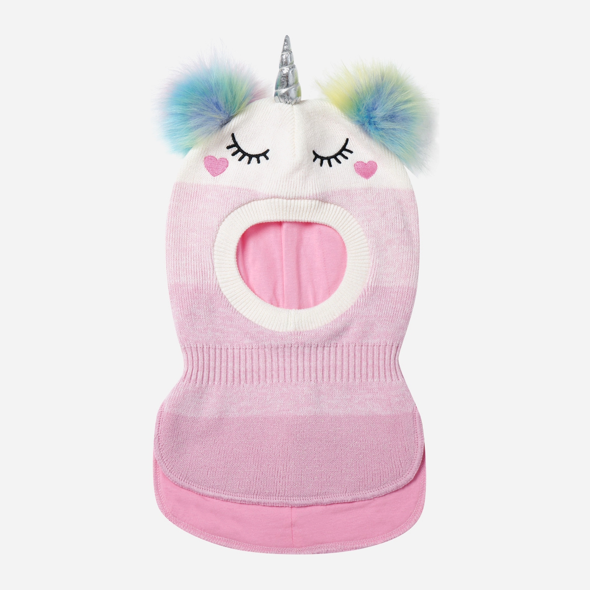 Шапка-шлем.- Тип - вязаная- Класс вязки - тонкая- Дизайн - многоцветная пряжа с люрексом- Декор - вышивка, декоративный «рог», помпоны из искусственного меха- На подкладке из хлопкового кроёного трикотажа