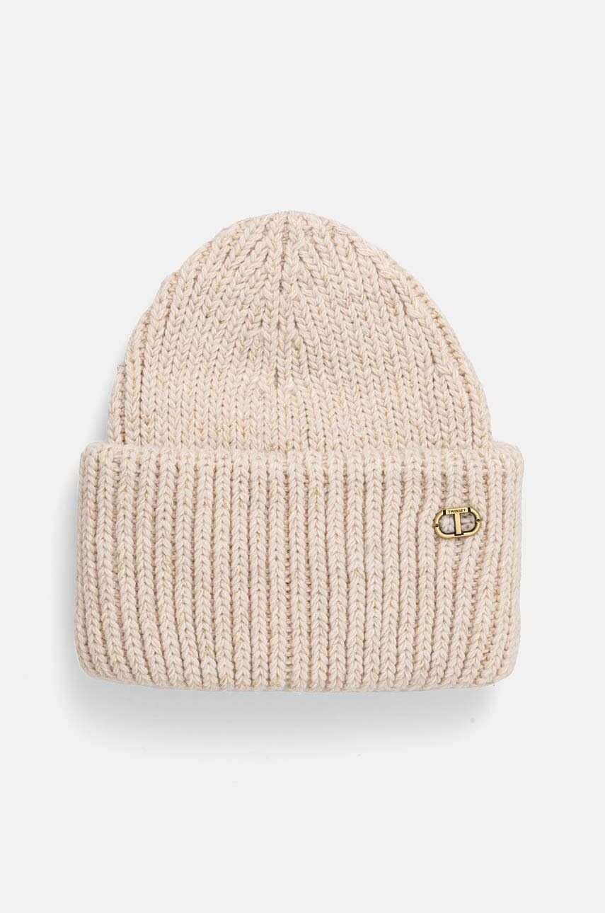 Шапка Twinset в бежово от плътен трикотаж 242TO5730, Бежов