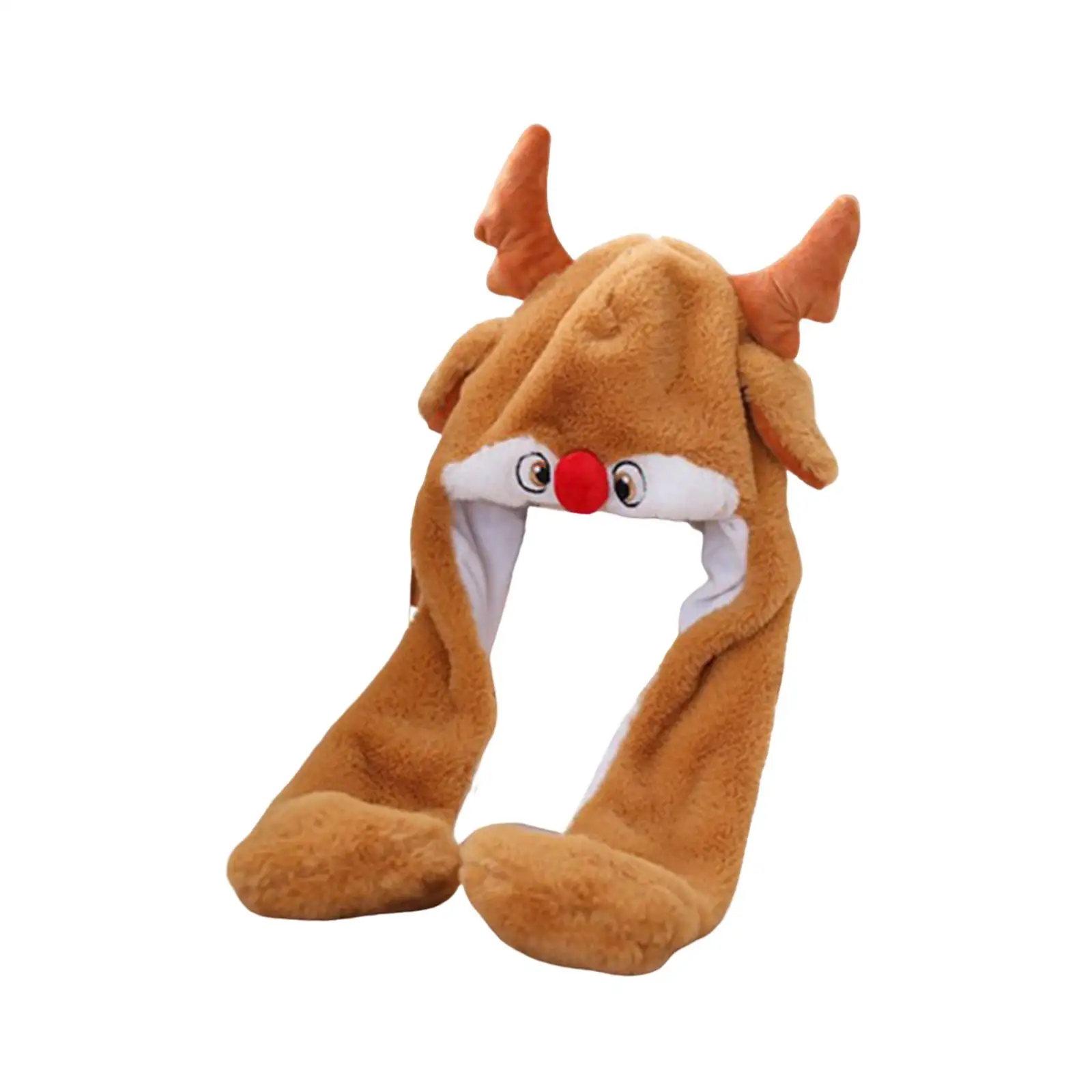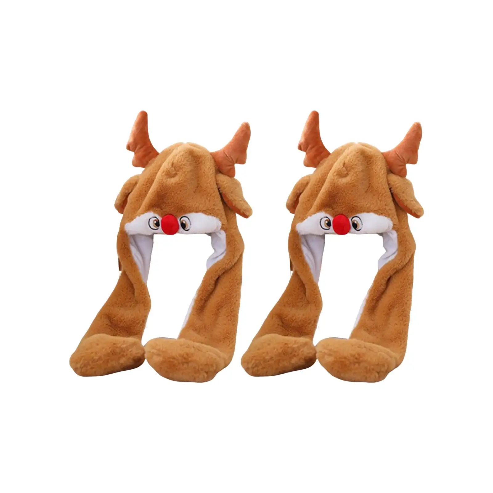 Шапки с движущимися ушами, шапки с движущимися прыжками, головной убор, головной убор, забавная плюшевая шапка с ушами для девочек