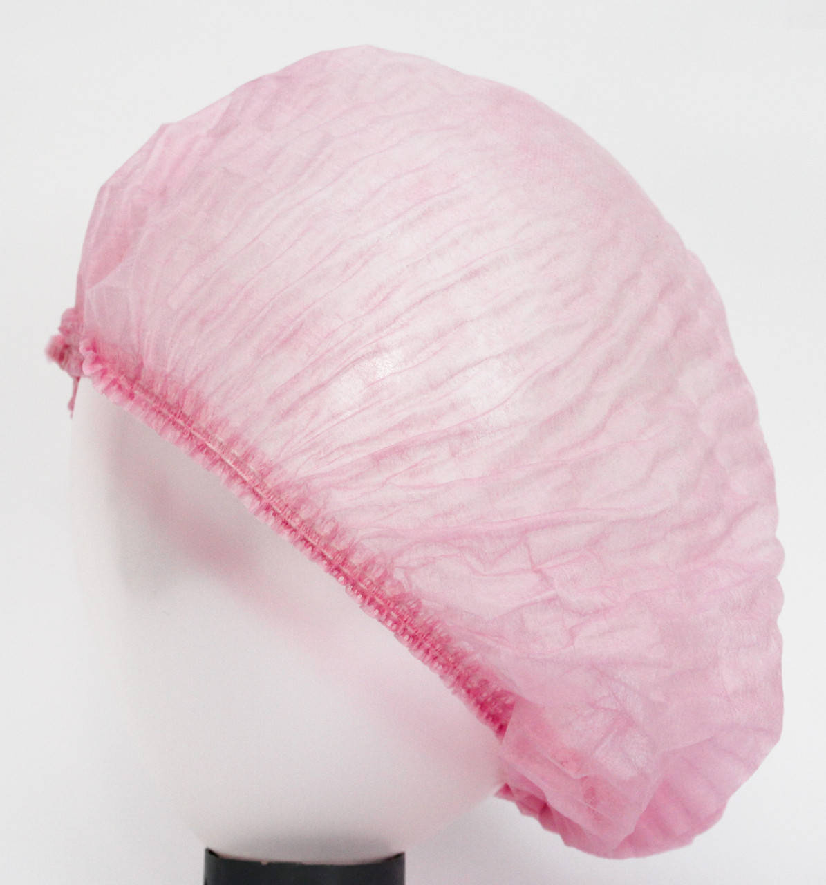 Одноразовая шапочка розового цвета - изготовлена из 100% полипропиленового нетканого безворсового материала (спандбонд), на двойной резинке. Имеет хорошую воздухопроницаемость одновременно с пылезащитными свойствами, не вызывает аллергических реакций, также хорошо задерживает влагу и надежно препятствует механическому загрязнению. Независимо от плотности изделия этот вид шапочек считается особенно легким, при этом не теряя в качественных характеристиках их использования. Шапочки относятся к необходимым средствам гигиены и способствуют требованиям санитарного режима. Шапочка хорошо удерживает волосы при косметологических процедурах при работе с лицом тем самым обеспечивая удобство работы мастера. В солярии защищает волосы от ультрафиолетовых лучей, защищает от пересыхания, и как следствие, от тусклости и ломкости. Одноразовая шапочка имеет форму компактных полосочек, после открытия она приобретает рельефные полоски по всей поверхности.