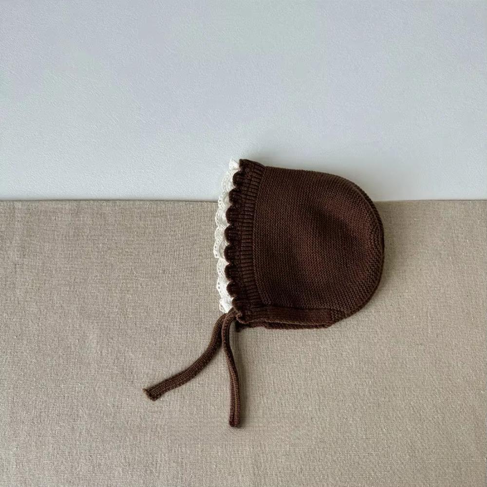 Шапочка с кружевной оборкой для защиты ушей, однотонная вязаная шерстяная шапка, новая осенне-зимняя шапка для мальчиков и девочек кофейный