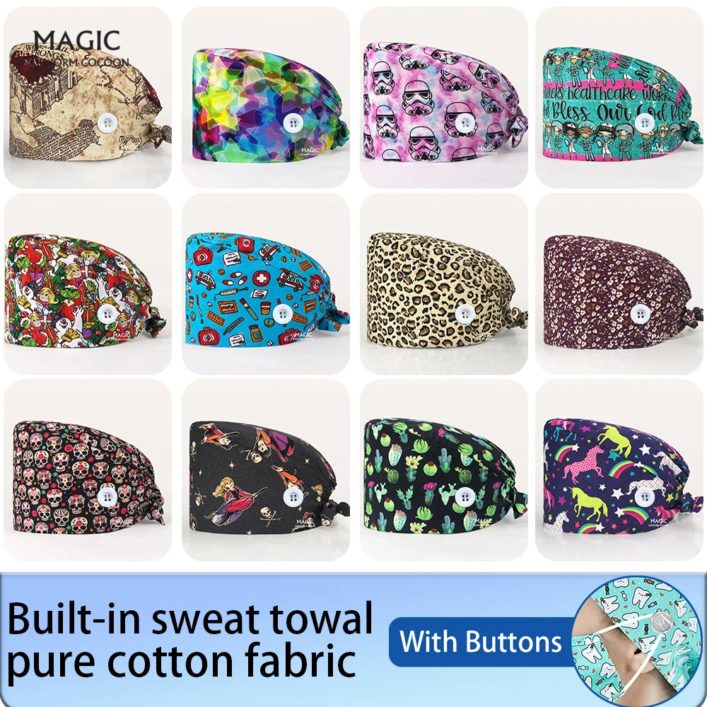 Шапочка унисекс из хлопка, регулируемая, впитывающая пот, эластичная, разноцветная, медицинские шапочки