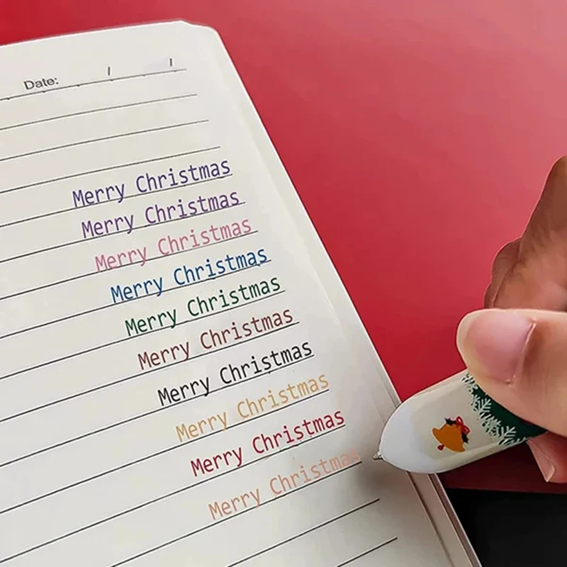 Шариковая ручка, 10 цветов, разноцветная ручка на Рождество, Санта-Клаус, лось, снеговик, разноцветная ручка, шариковая ручка, стильный подаро...