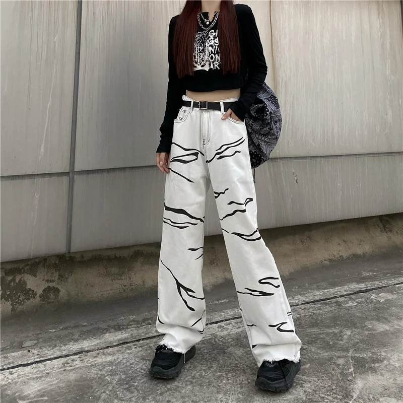 Джинсы женские с заниженной талией, модные мешковатые джинсы с принтом в Корейском стиле, свободные широкие брюки в стиле оверсайз, Y2K, осень...