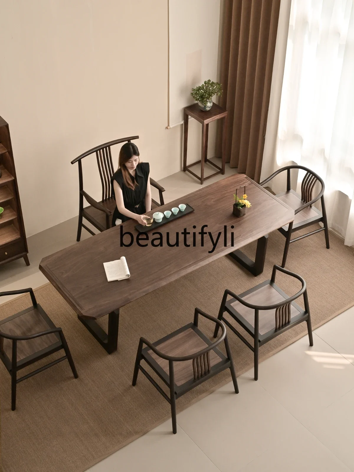 Современная простая комбинация двухметрового чайного столика и стула из цельного дерева, новый китайский чайный столик в гостиной, новый элитный9344