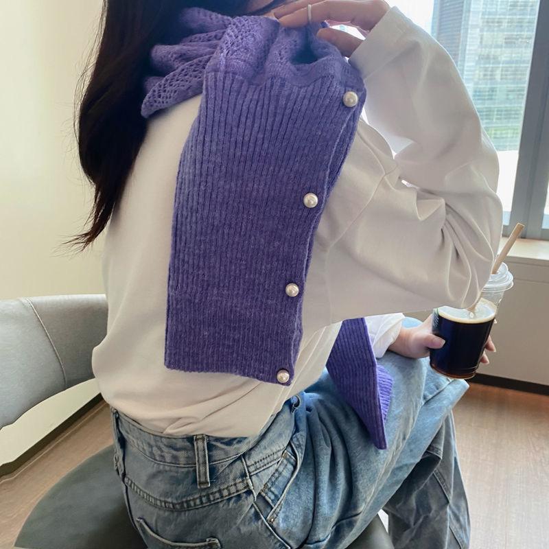 Шарф Поддельный воротник Внешний шарф Шаль Жемчужная пряжка Вязаная шерсть Маленькое плечо 135-175CM фиолетовый