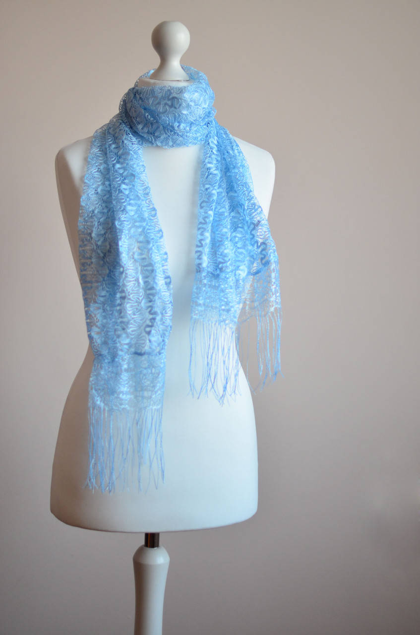 Шарф ажурный с бахрамой (голубой), Разные цвета