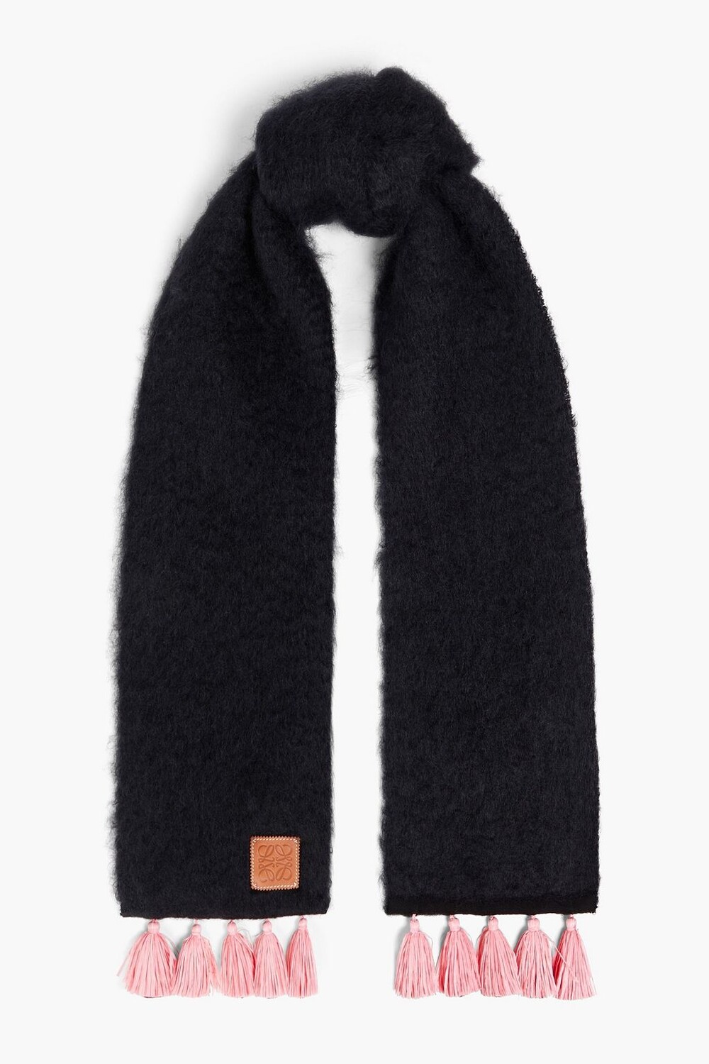 Шарф из смесового мохера с кисточками и кисточками LOEWE, черный