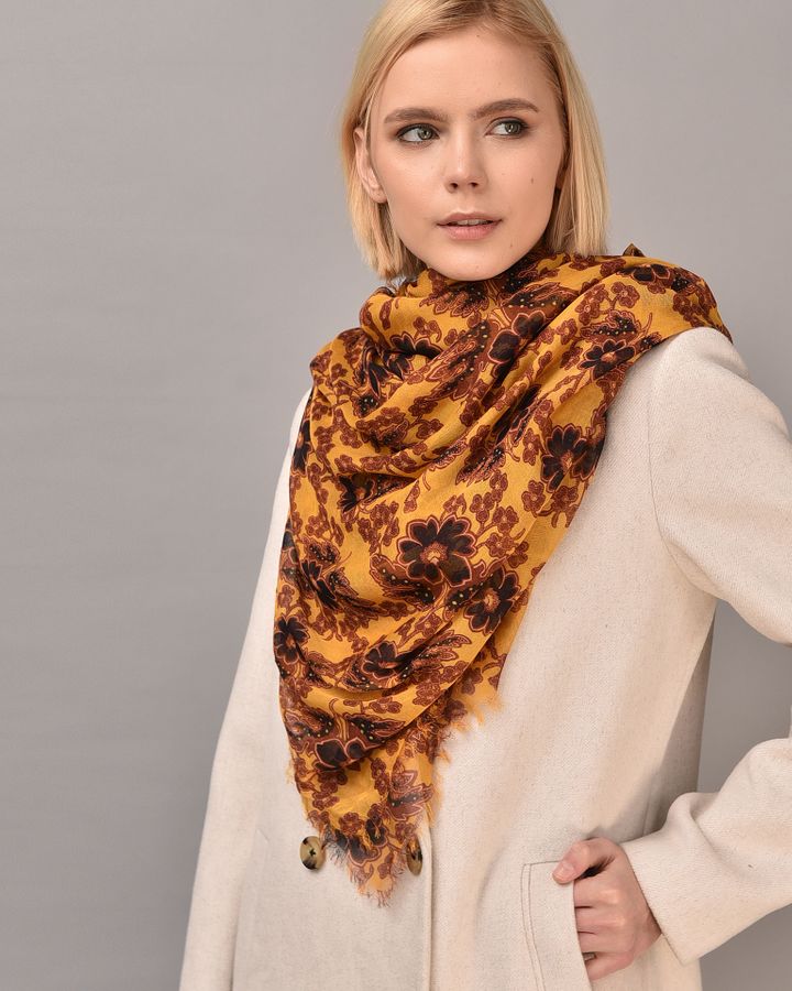 Женские брюки с высокой талией, широкие, повседневные, струящиеся брюки-палаццо, брюки с цветочным принтом и карманом S оранжевый