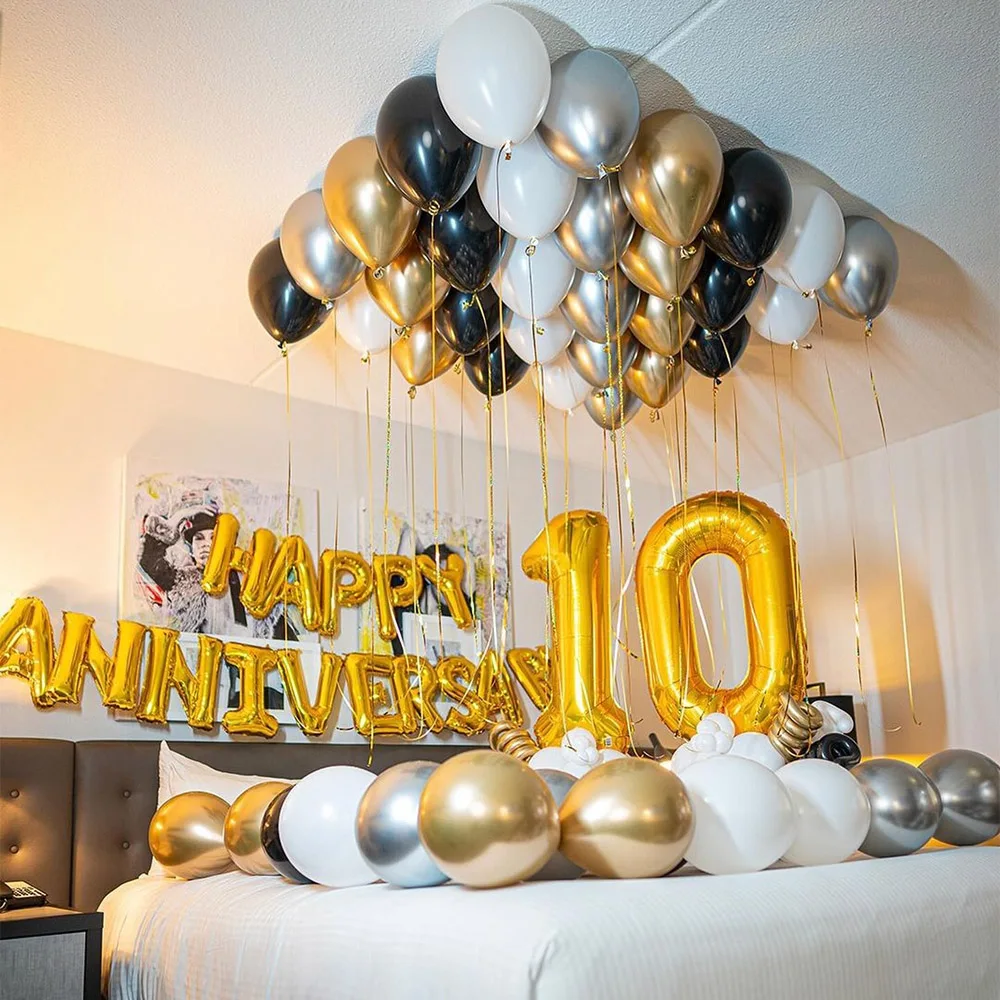 Шары воздушные латексные золотистые/Серебристые Металлические на годовщину, 79/80 шт.