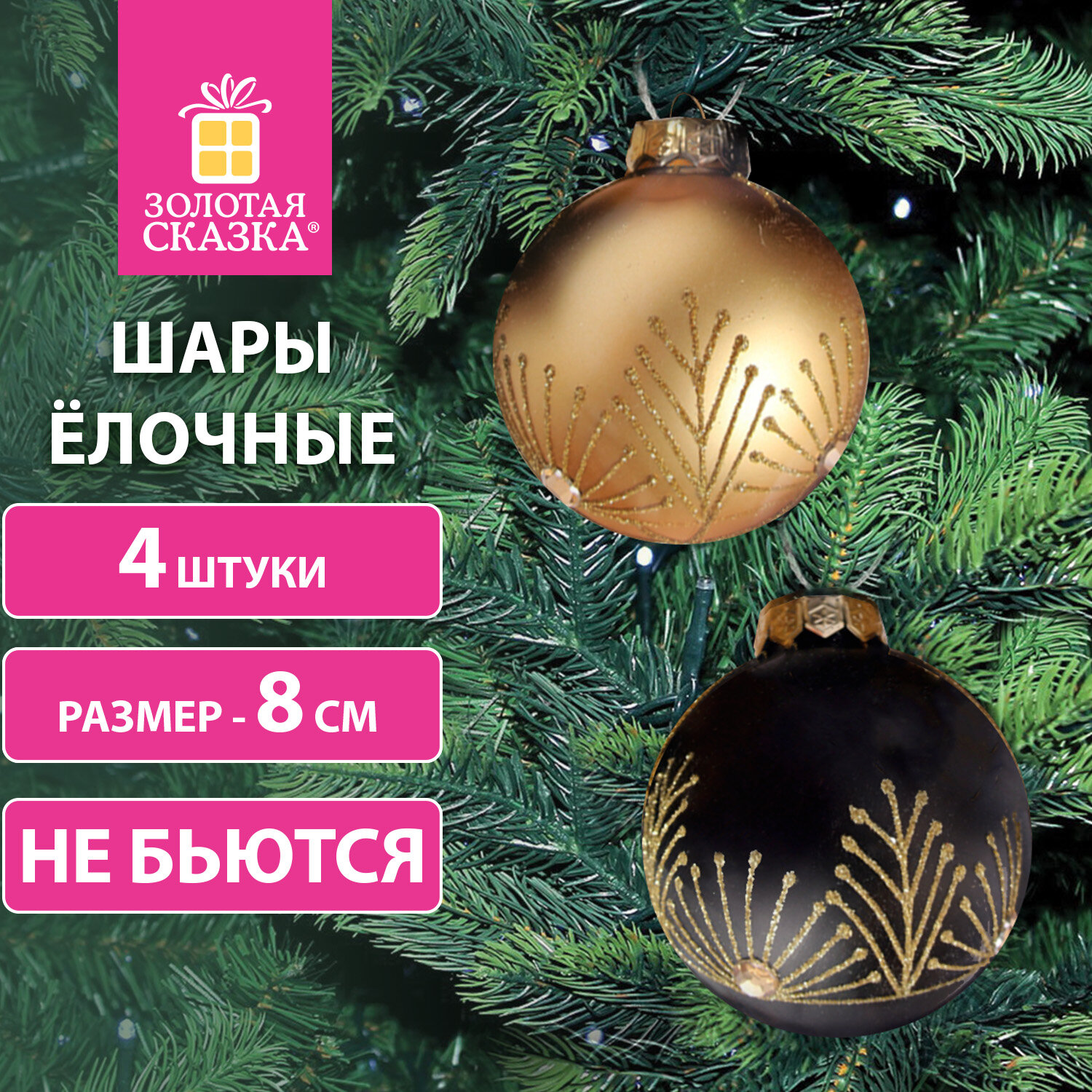Шары елочные Золотая Сказка Yin-Yang, высота: 8 см, 4 шт., черный/золотистый, пластик (591995)