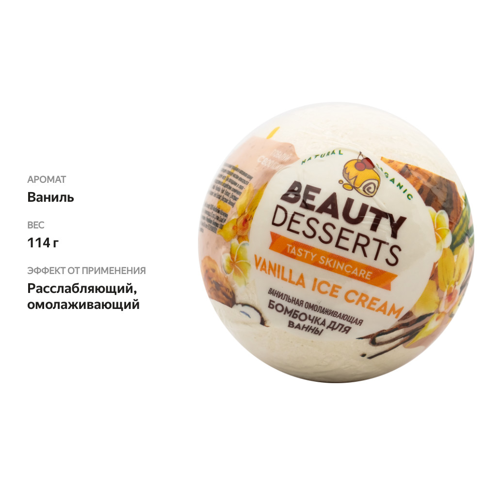 Шар для ванны BEAUTY DESSERTS Шипучая бомбочка омолаживающая ванильная, 110г