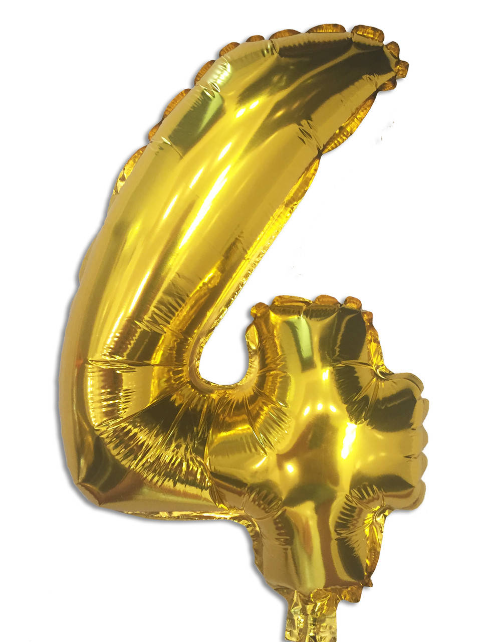 Шар фольгированный золотой цифра "4" , 100 см в упаковке, Золотистый