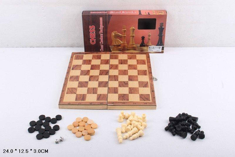 Шахматы деревянные шашки нарды 3в1, поле 24*24см, см. описание