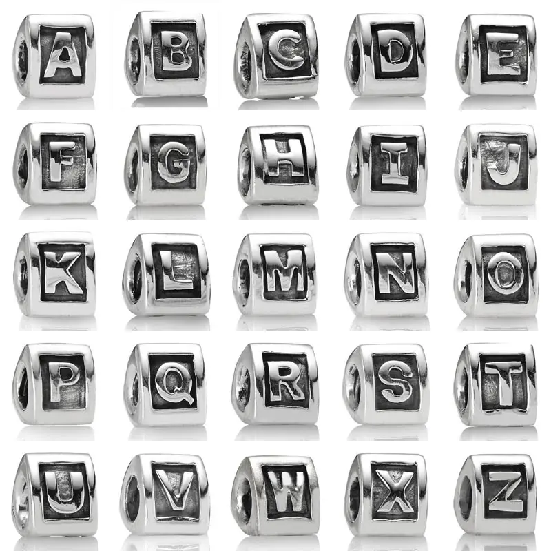 A-Z Authentic 925 Sterling Silver Bead Charm Vintage Triangle Alphabet 26 Letter Beads Fit Pandora Bracelet Bangle DIY Jewelry