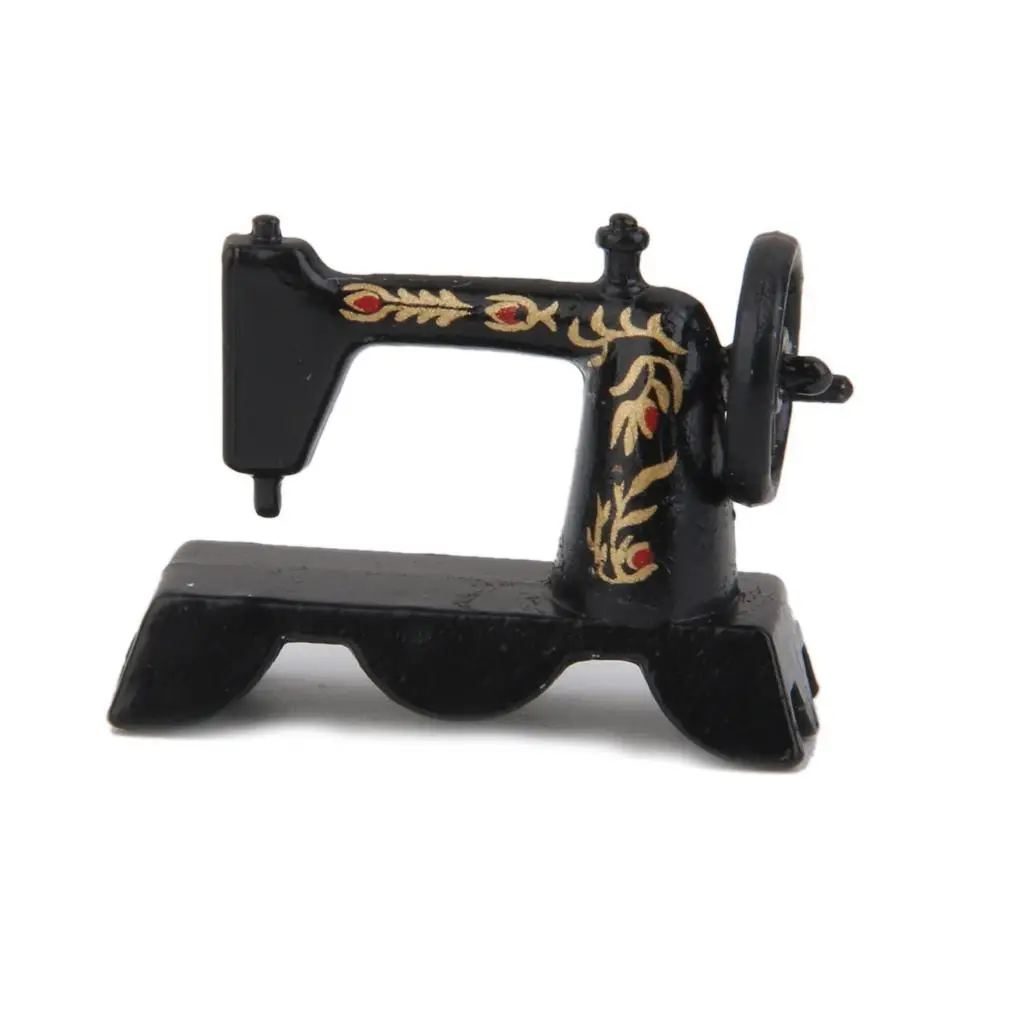 : Швейная машина в масштабе 12 дюймов, миниатюрная мебель для кукольного домика с золотыми цветами, садовые аксессуары для кукол