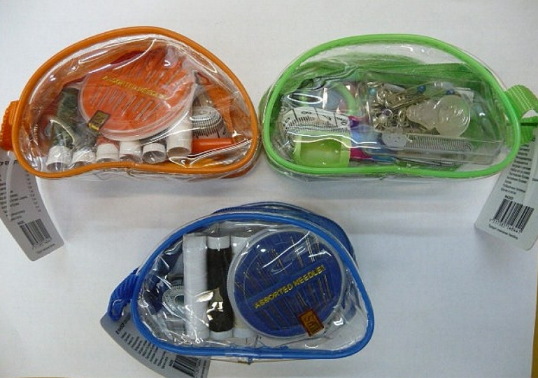 Дорожный швейный набор содержит в себе все самые главные принадлежности для починки одежды. Благодаря этому набору, вы всегда имеете возможность отремонтировать вещи во время дальнего путешествия, длительного туристического похода и т.д. Все швейные принадлежности собраны в прочной, компактной прозрачной сумочке. Этот швейный набор шитья состоит из следующих инструментов и расходных материалов: