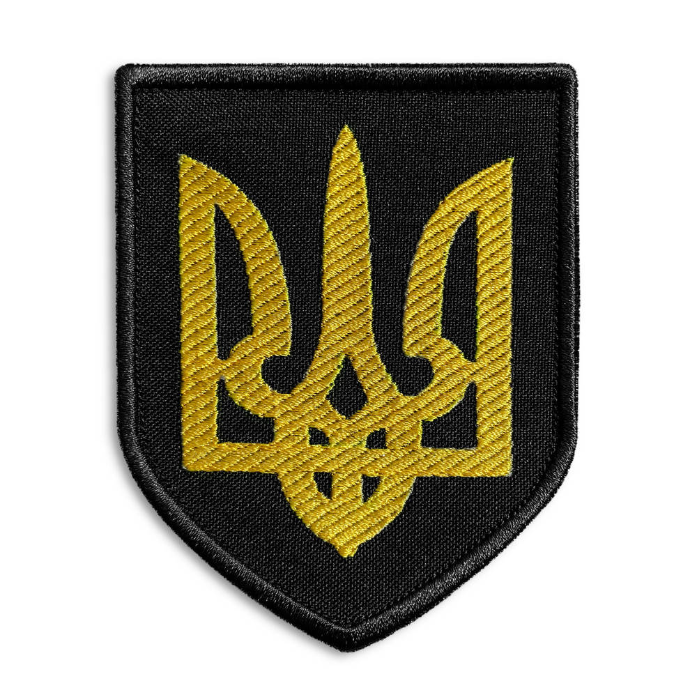 Наплечный шеврон на жесткой тканевой основе. Символизирует принадлежность к силовым структурам Украины.Выполнен в виде заостренного вниз щита с вышитым на его поле национальным гербом. Края шеврона обрамлены темным бортом, подчеркивающим его форму.