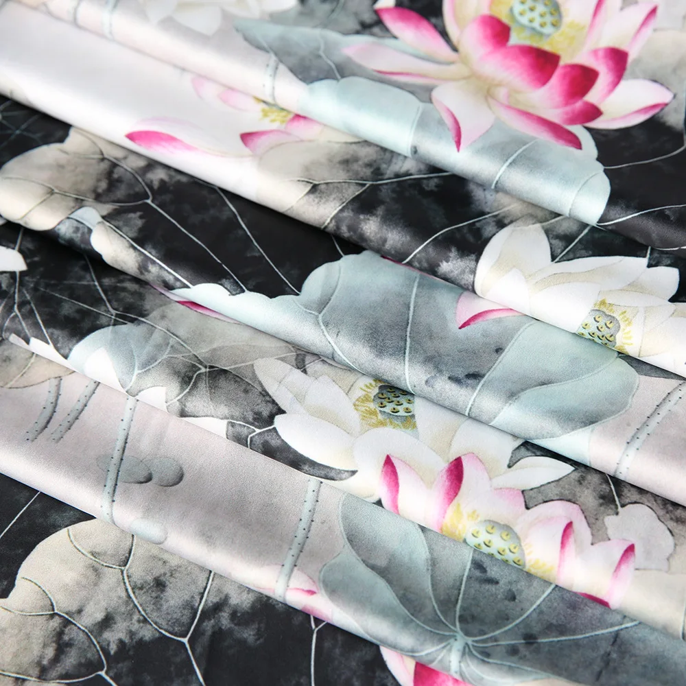 Шелковая ткань с лотосом и чернилами, ткань чонсам, имитация Xiangyun, пряжа Hanfu, аксессуары для багажа, ширина 150 см