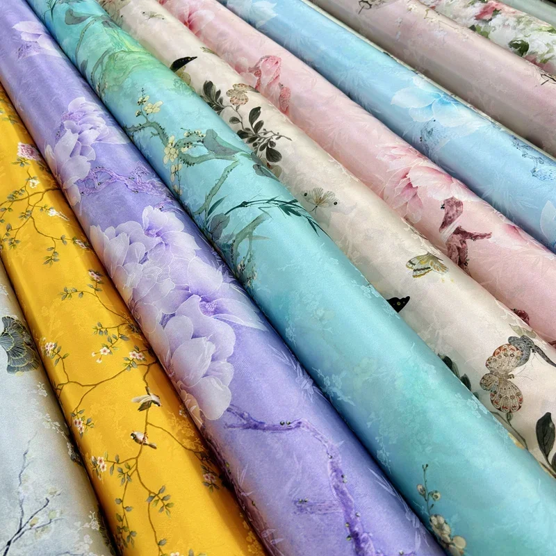 Шелковая ткань, шелковичный жаккард по метрам для платьев Cheongsam, футболок, шитья, микроэластичная цветочная ткань, мягкая драпировка