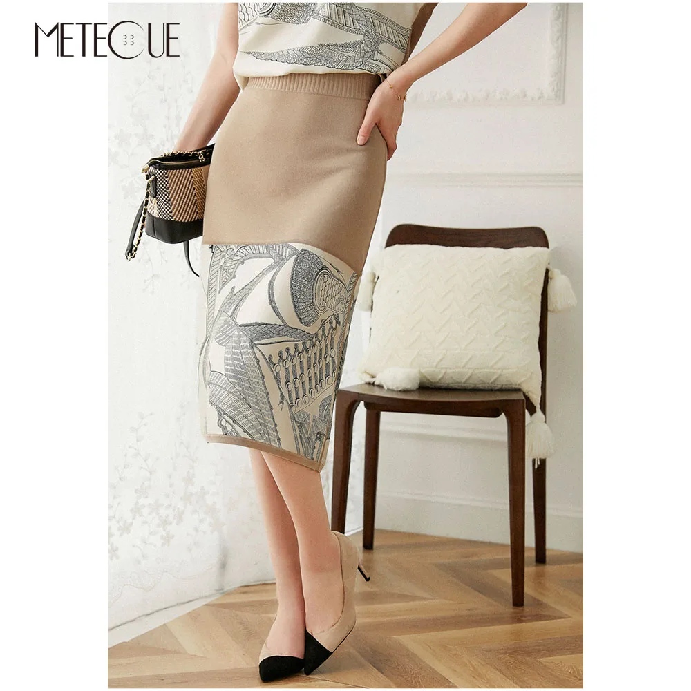 Шелковая трикотажная Женская юбка с заплатками, Новинка весна-лето 2021, модная юбка миди с высокой талией