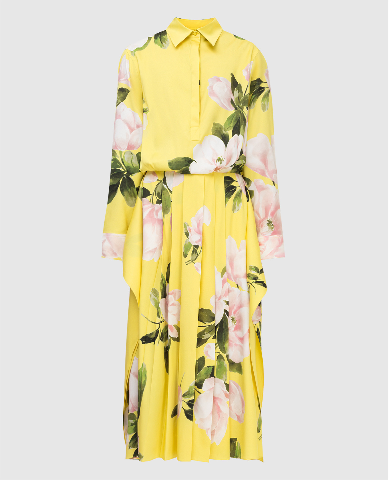 Шелковое платье-рубашка в цветочный принт, Желтый, Повседневные платья