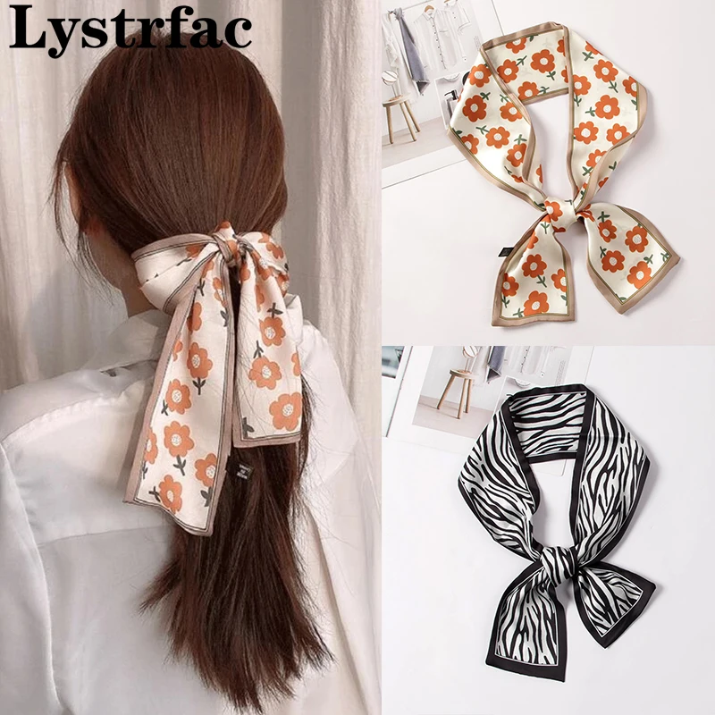 Шелковый длинный платок lystrфактор с принтом, женский повязка для волос для девочек ленточный стример, головной убор с бантом, аксессуары для...