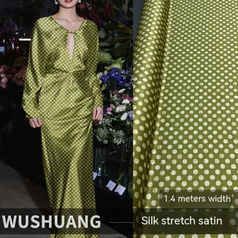 Шелковый тянущийся Атлас Тутовый шелк зеленый горошек Чонсам Модная рубашка Длинная юбка драпированная гладкая оптовая продажа ткани за метр