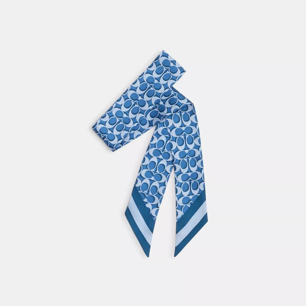 Шелковый узкий шарф с принтом Coach Signature небесно-голубой One Size
