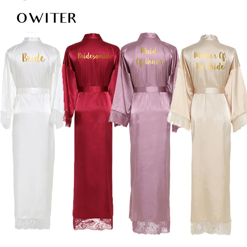 Шелковый халат, Атласный халат, кружевные халаты, белые халаты для подружки невесты, Свадебный длинный халат