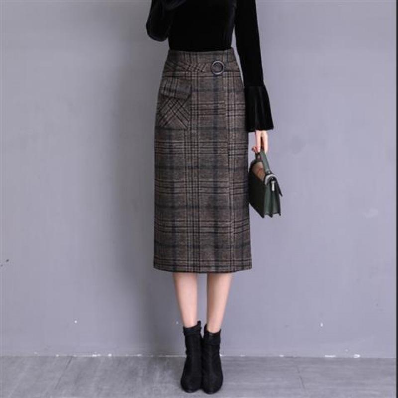 Шерстяная клетчатая юбка женская 2024 ранняя весна новая высокая талия и тонкая юбка с запахом на бедрах с разрезом вилка средняя и длинная юбка для детей 3XL