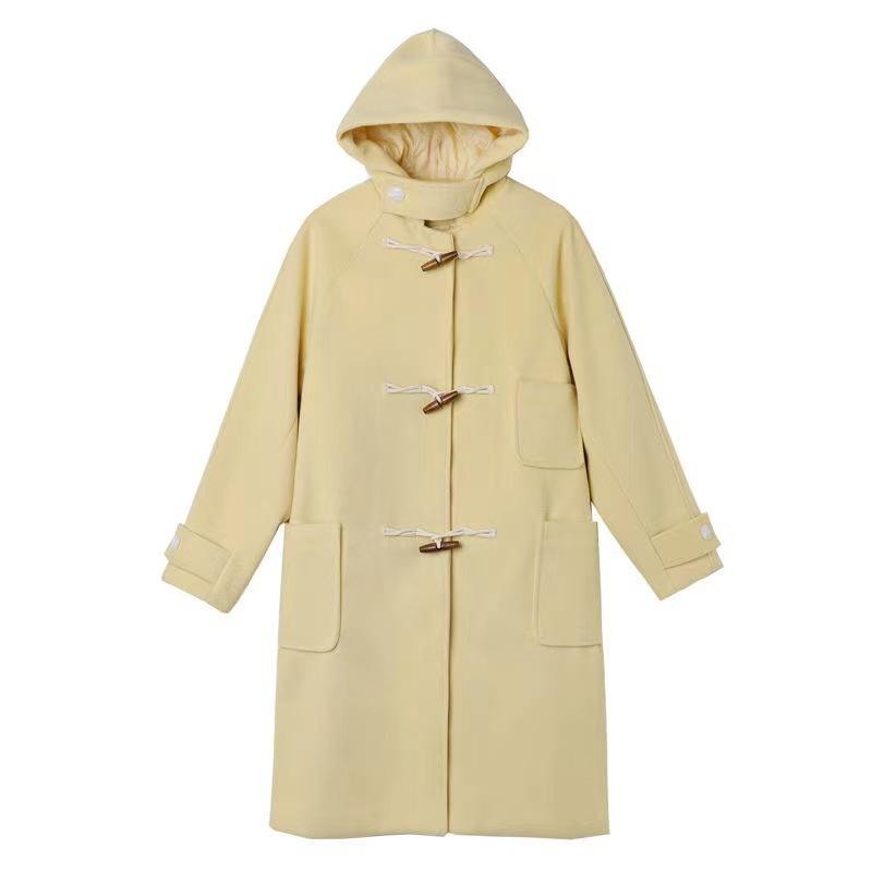 Шерстяная куртка женская новая желтая роговая пуговица пальто утолщенное на осень и зиму 2XL