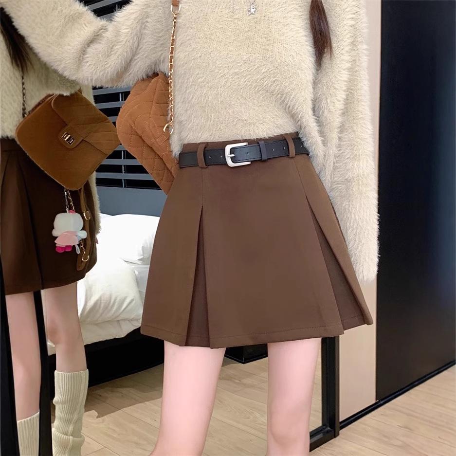 Шерстяная миди-юбка А-силуэта большого размера: Стройнящая высокая талия, плиссированная, скрывает живот и бедра для осени/зимы 2024 4XL