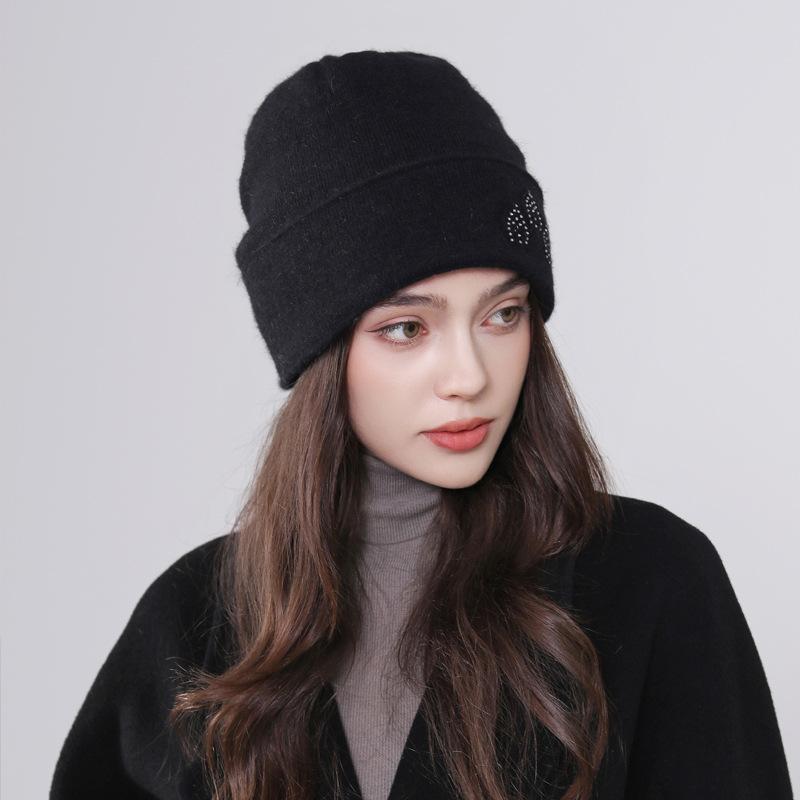 Шерстяная шапка женская высококачественная вязаная шерстяная шапка с бриллиантами зимняя теплая ворсовая шапка универсальная холодная шапка